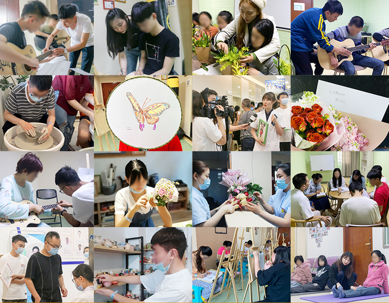 我院是省内较早开展特色工娱治疗的专业机构之一,组建了一支由四川大学、四川师范大学博士、硕士研究生领衔的工娱治疗团队。针对开展工娱项目,包括:在校常规课程辅导、绘画音乐舞蹈训练、瑜伽武术运动训练、花艺陶艺棋艺训练、生活社交技能训练等。并定期联合公益组织开展集体画展、文娱汇演、才艺展示等丰富多彩的活动;其中针对性学科辅导帮助多位患者在2020年高考取得600+高分。
